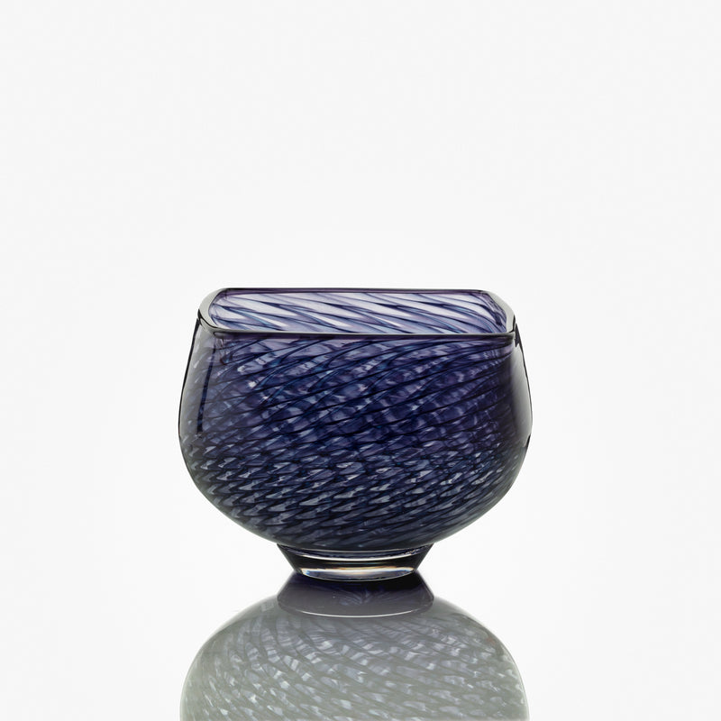Denne skål har flere flotte nuancer af blå og lilla. Foden er gennemsigtig.