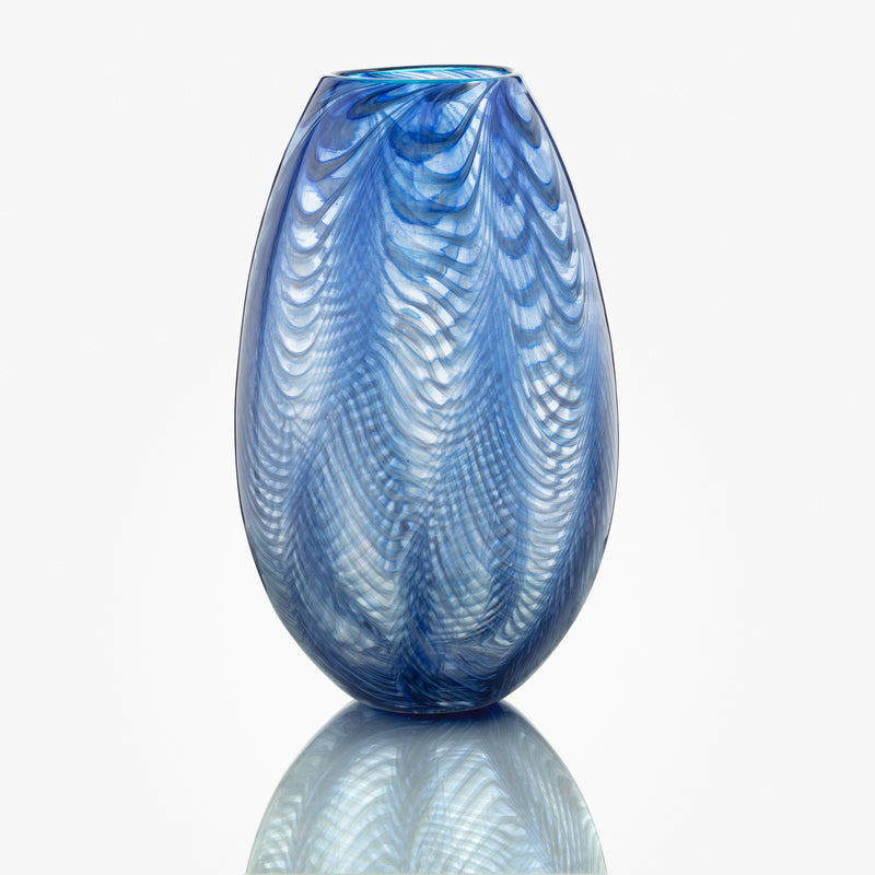 Mønstret i denne elegante vase er inspireret af bølgerne i Østersøen. Flotte blå nuancer og delvis gennemsigtig vase.