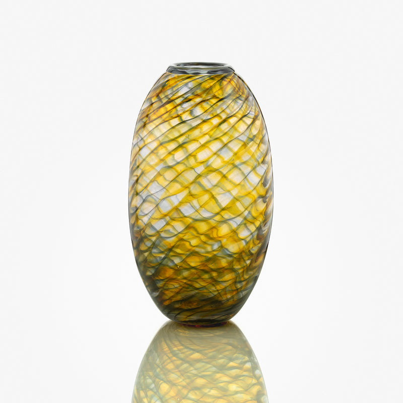Mønstret i denne elegante vase er inspireret af bølgerne i Østersøen. Flotte gule og grå nuancer og delvis gennemsigtig vase.